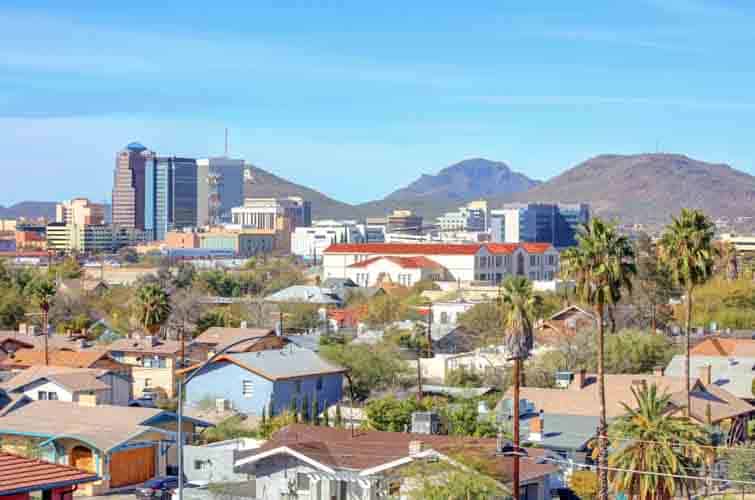 Tucson is surrounded by several mountain ranges including the Santa Catalinas, Santa Ritas, Rincons, and Tucson Mountains. Summers are hot and winters are mild.
